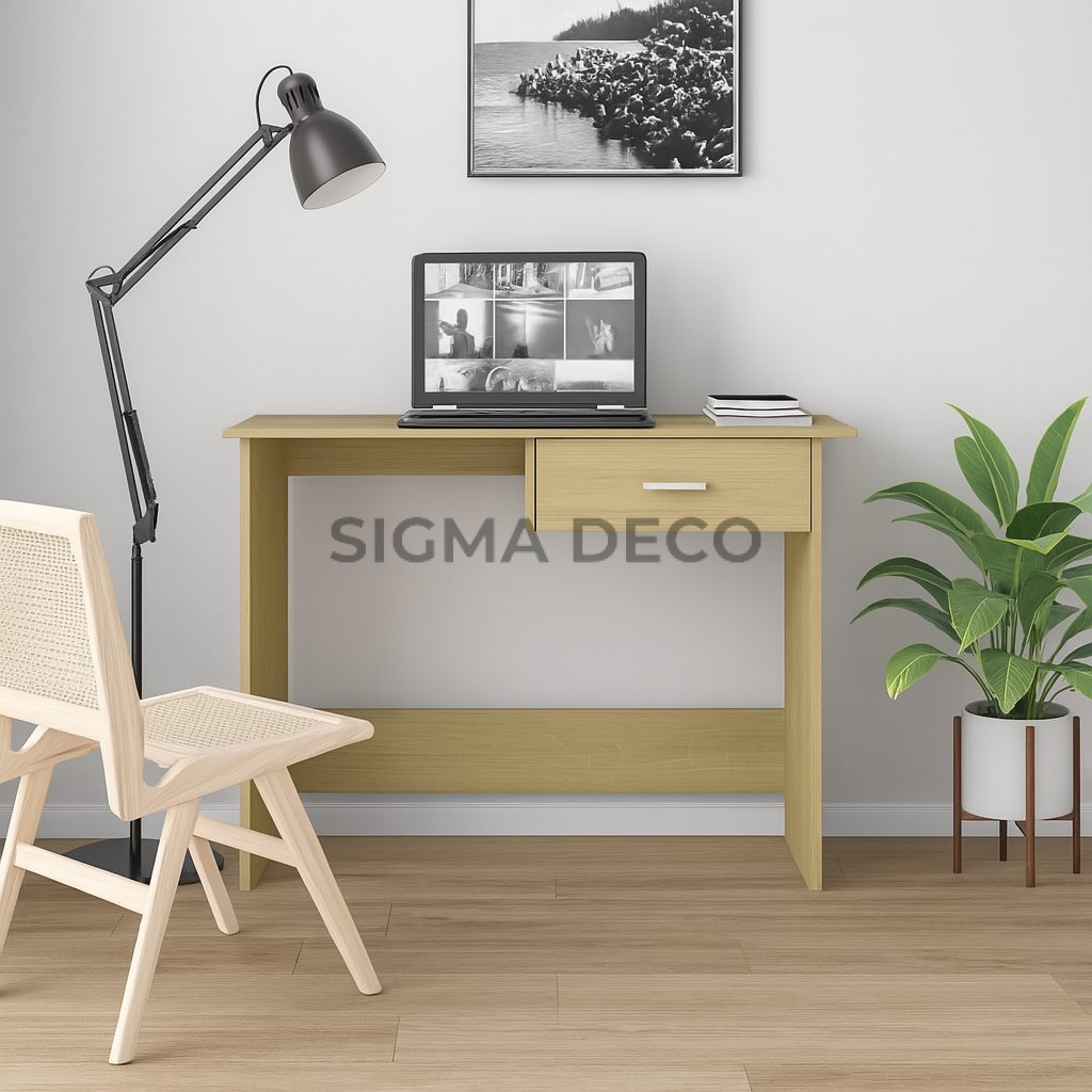Bureau Simple en Bois Clair avec Tiroir – Style Scandinave
