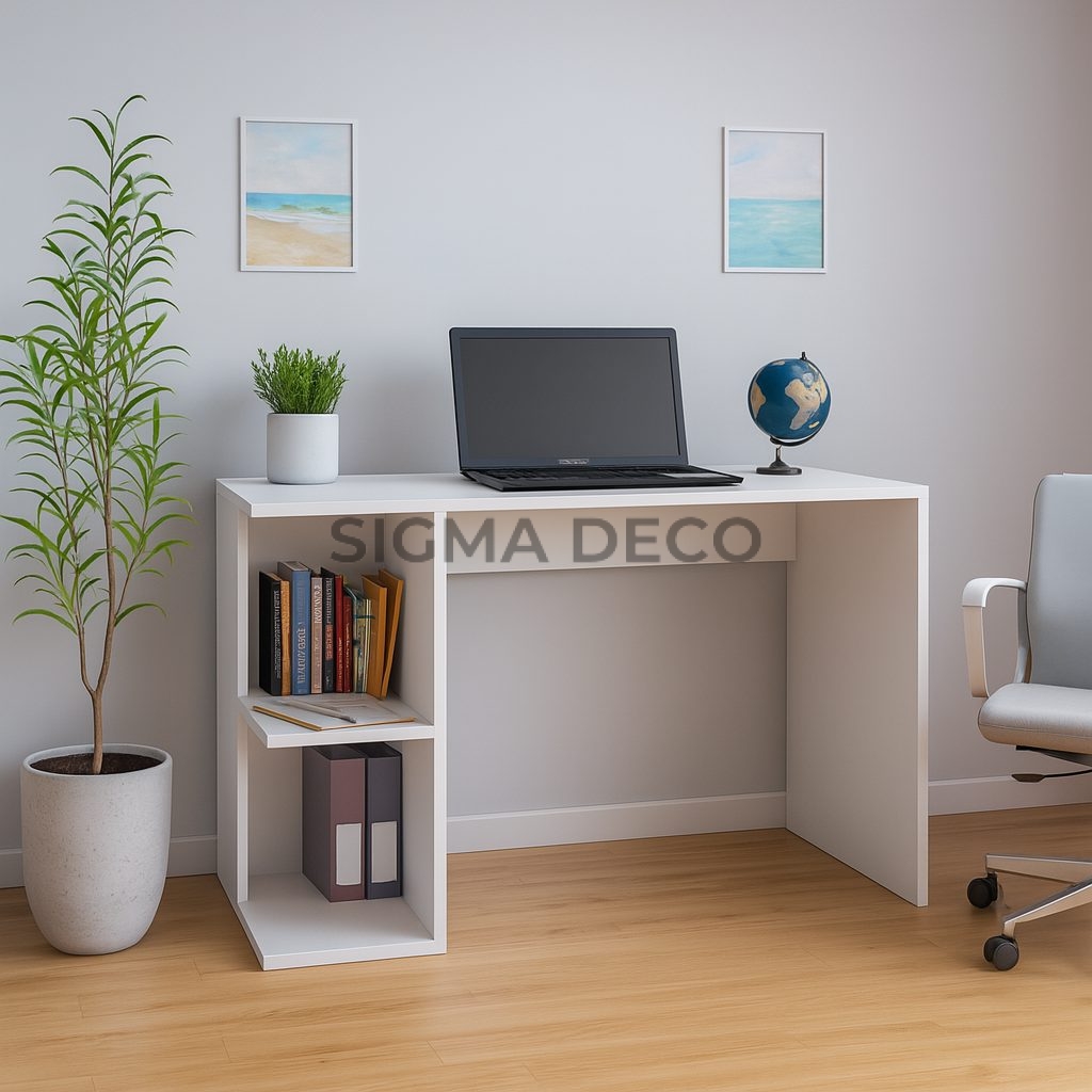 Bureau Blanc avec Étagères Intégrées – Rangement Optimisé