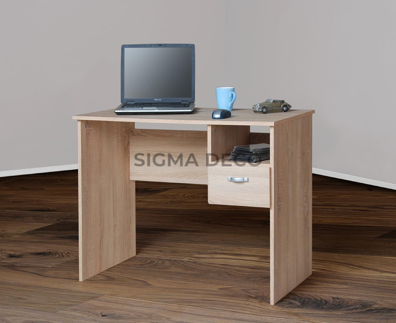 Bureau Compact Bois Clair – Tiroir et Rangement Pratiques