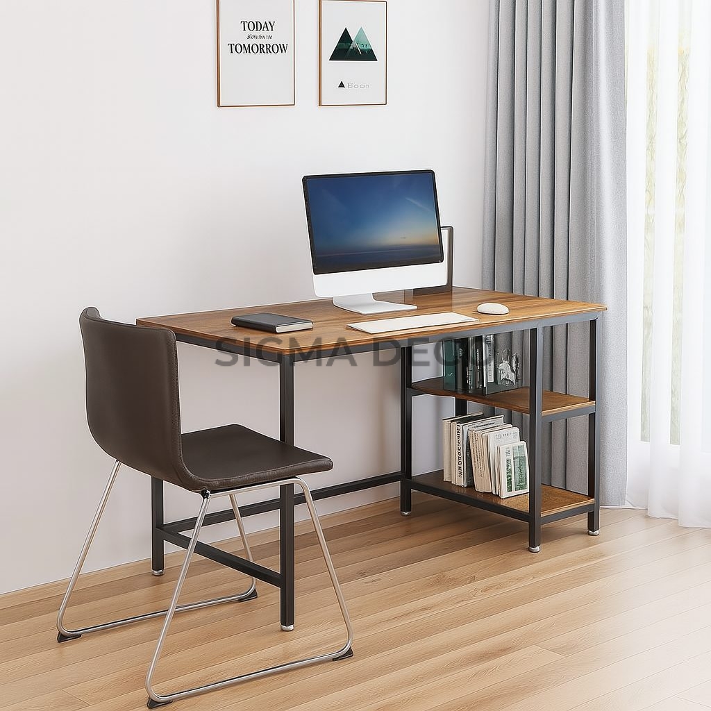 Grand Bureau Style Industriel Bois et Métal avec Étagères