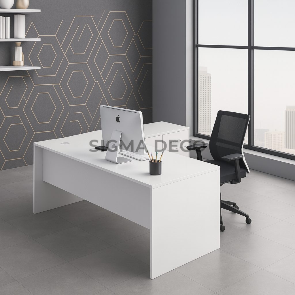 Découvrez notre bureau de direction blanc, alliant design épuré et fonctionnalité. Son style minimaliste s’intègre parfaitement à tout espace de travail moderne