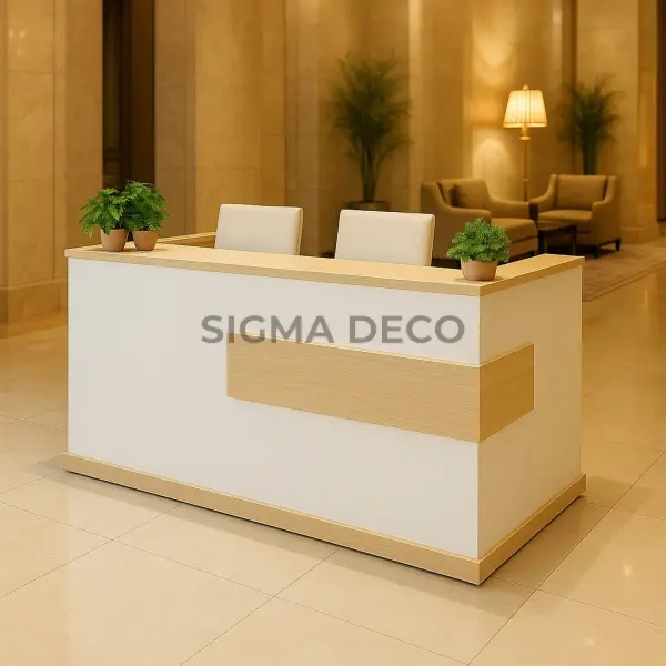 Comptoir d’Accueil Bicolore Bois et Blanc – Chaleur et Modernité