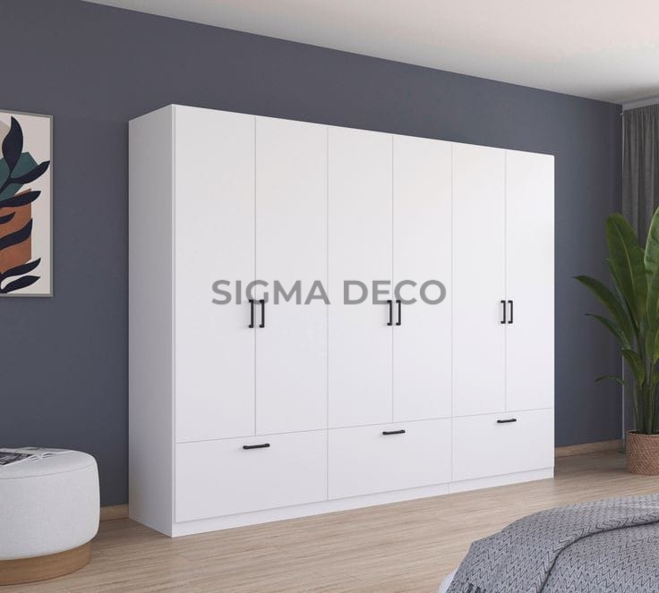 Très Grande Armoire Blanche 6 Portes & 3 Tiroirs – Max. Rangement