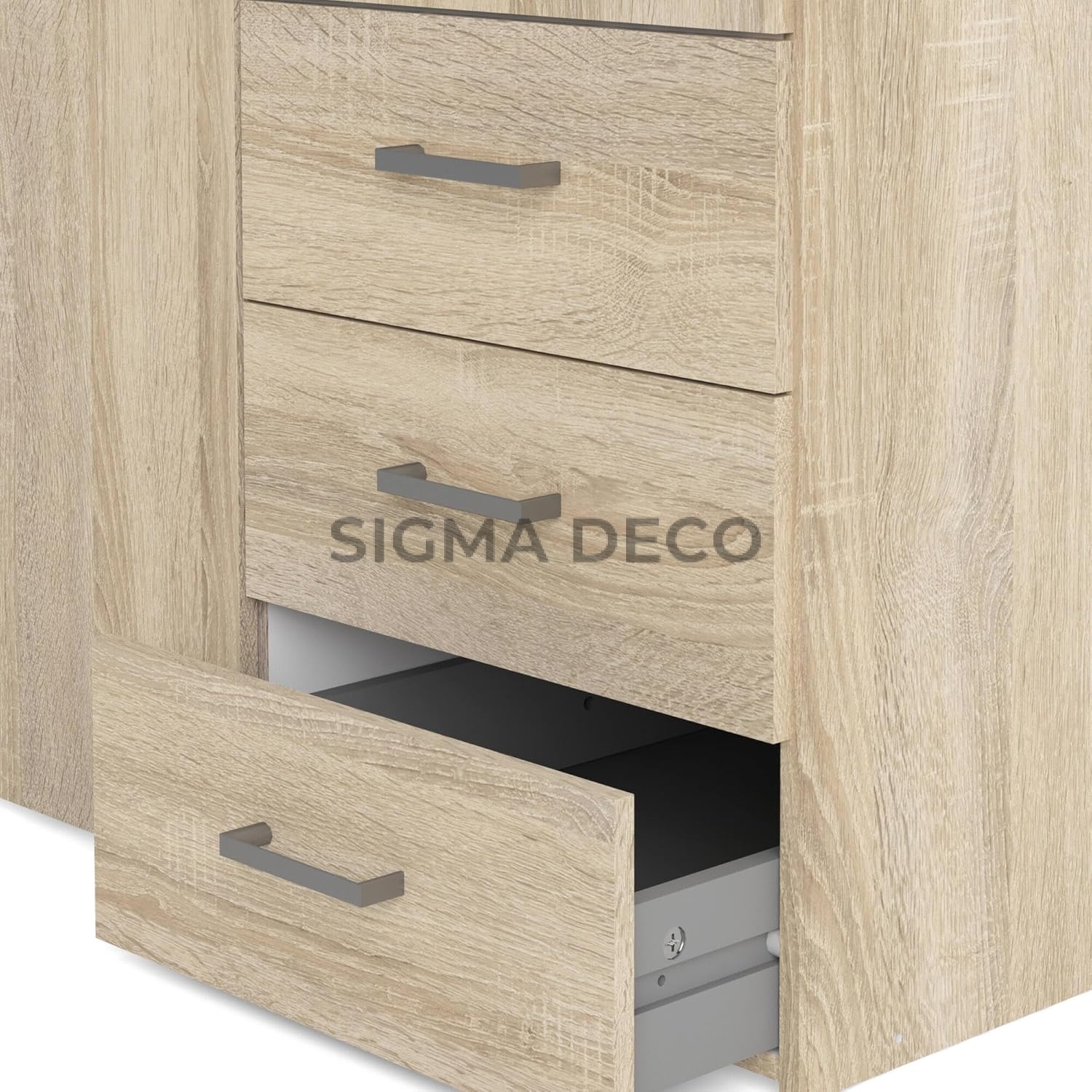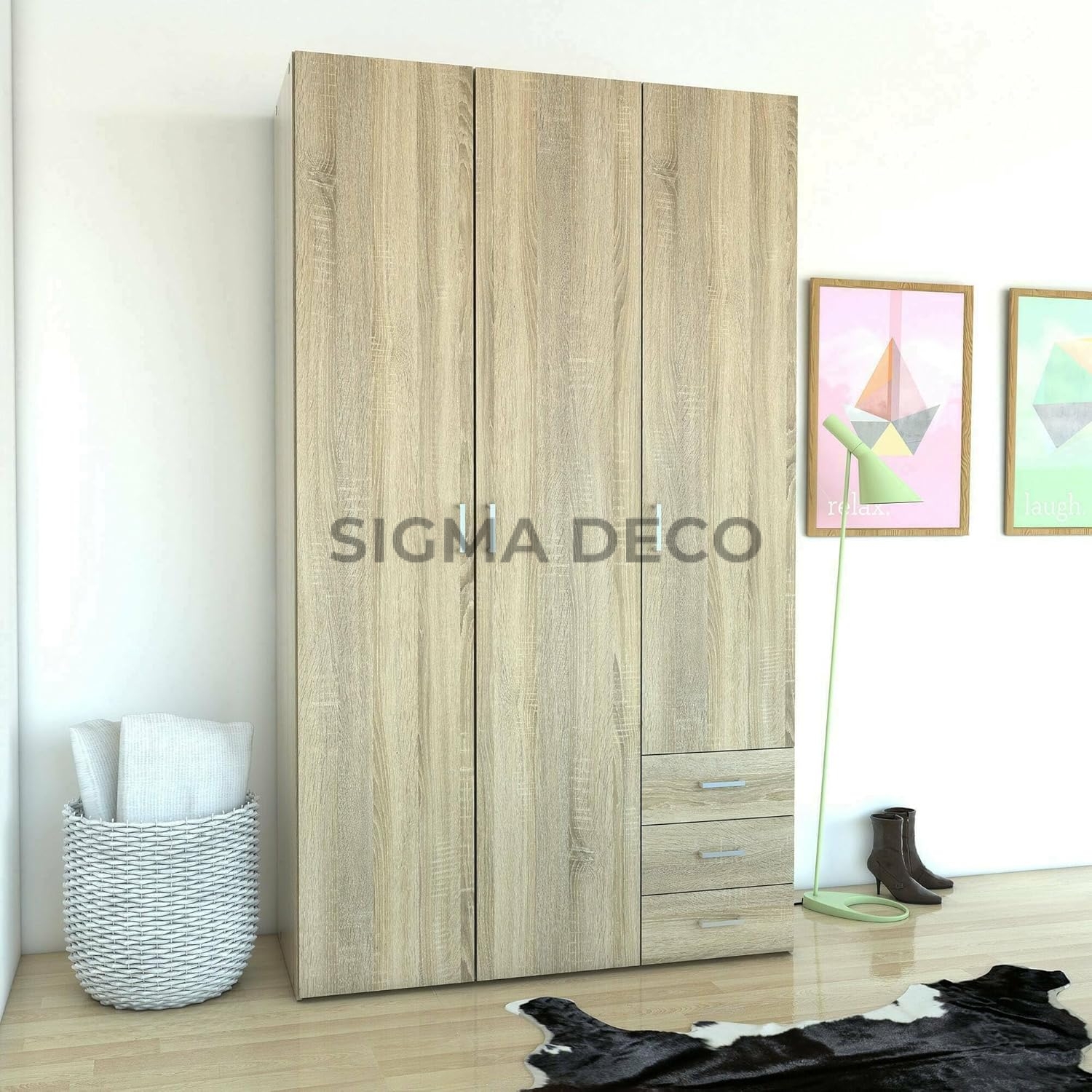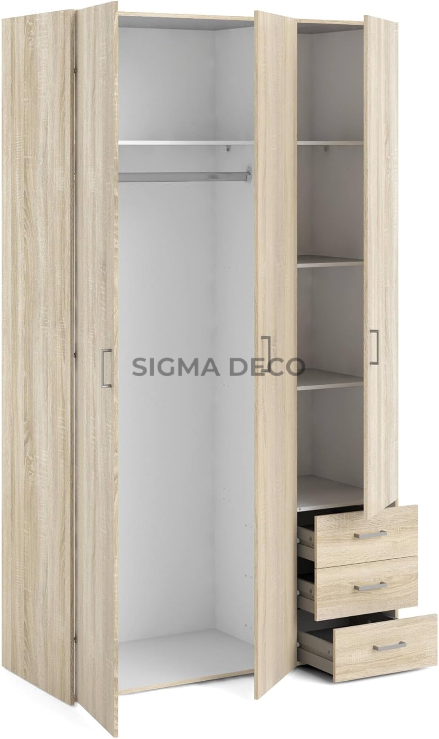 Armoire Multi-Usage 3 Portes Effet Bois avec Tiroirs