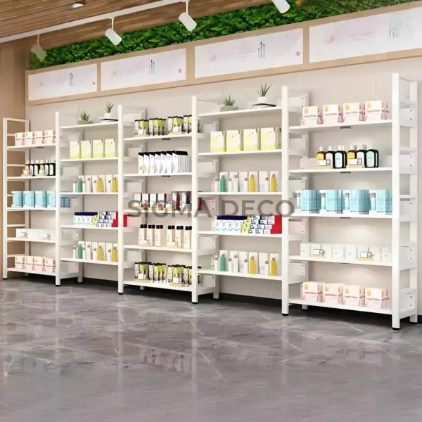 Présentoir de Magasin – Étagère Murale Modulable Blanche