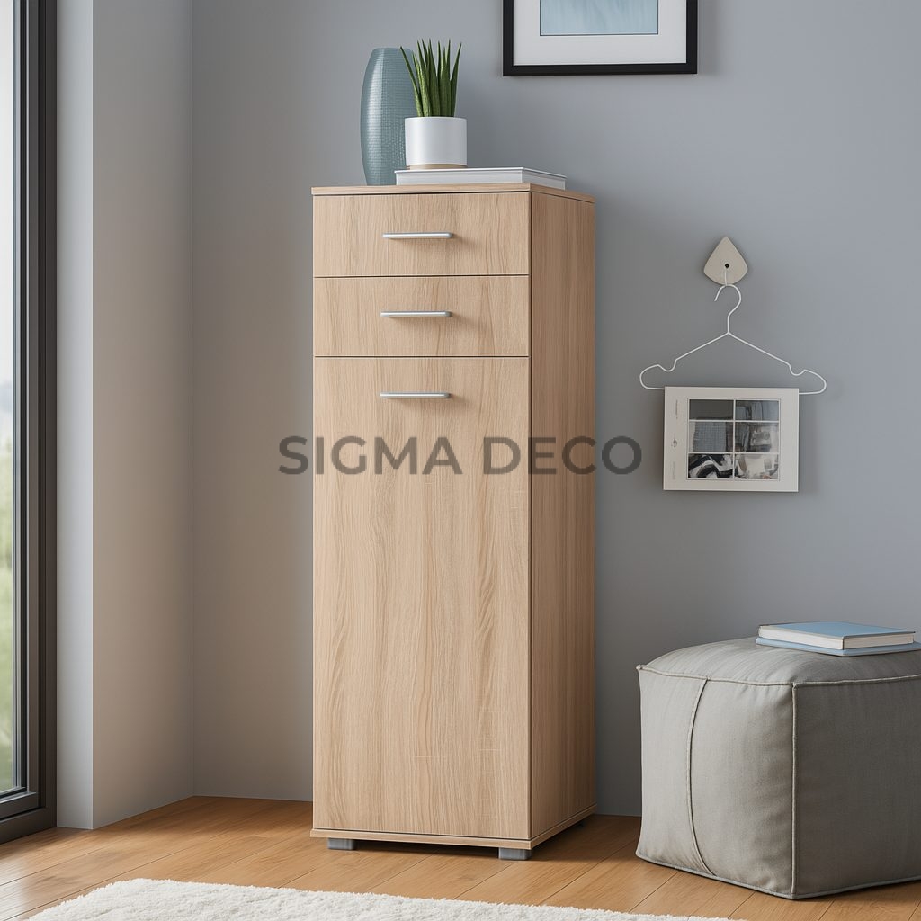 Colonne de Rangement Étroite Effet Bois avec Tiroirs