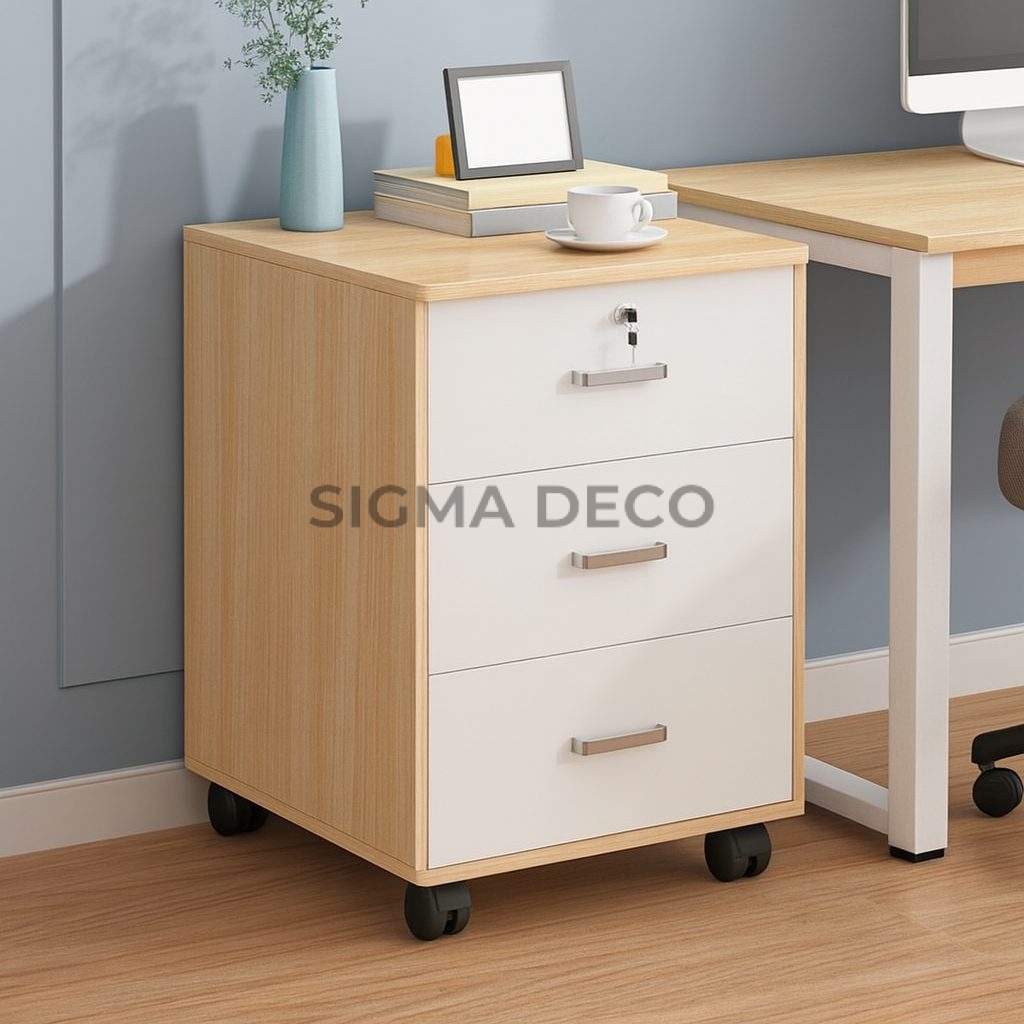 Tiroir de rangement de bureau mobile à 3 niveaux. Design élégant et fonctionnel, parfait pour organiser votre espace de travail. Avec roulettes et tiroir supérieur verrouillable. Idéal pour la maison ou le bureau.