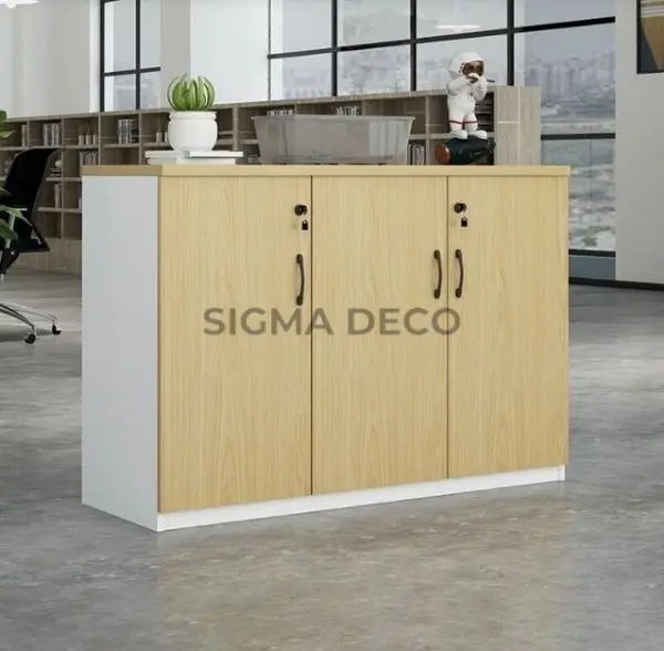 Armoire de bureau basse à 3 portes. Solution de rangement élégante et discrète pour le bureau ou la maison.