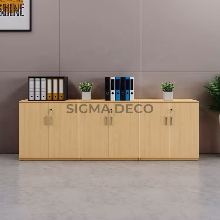 Module de 3 armoires de bureau. Rangement sécurisé avec serrures. Idéal pour documents et fournitures. Design modulable et professionnel