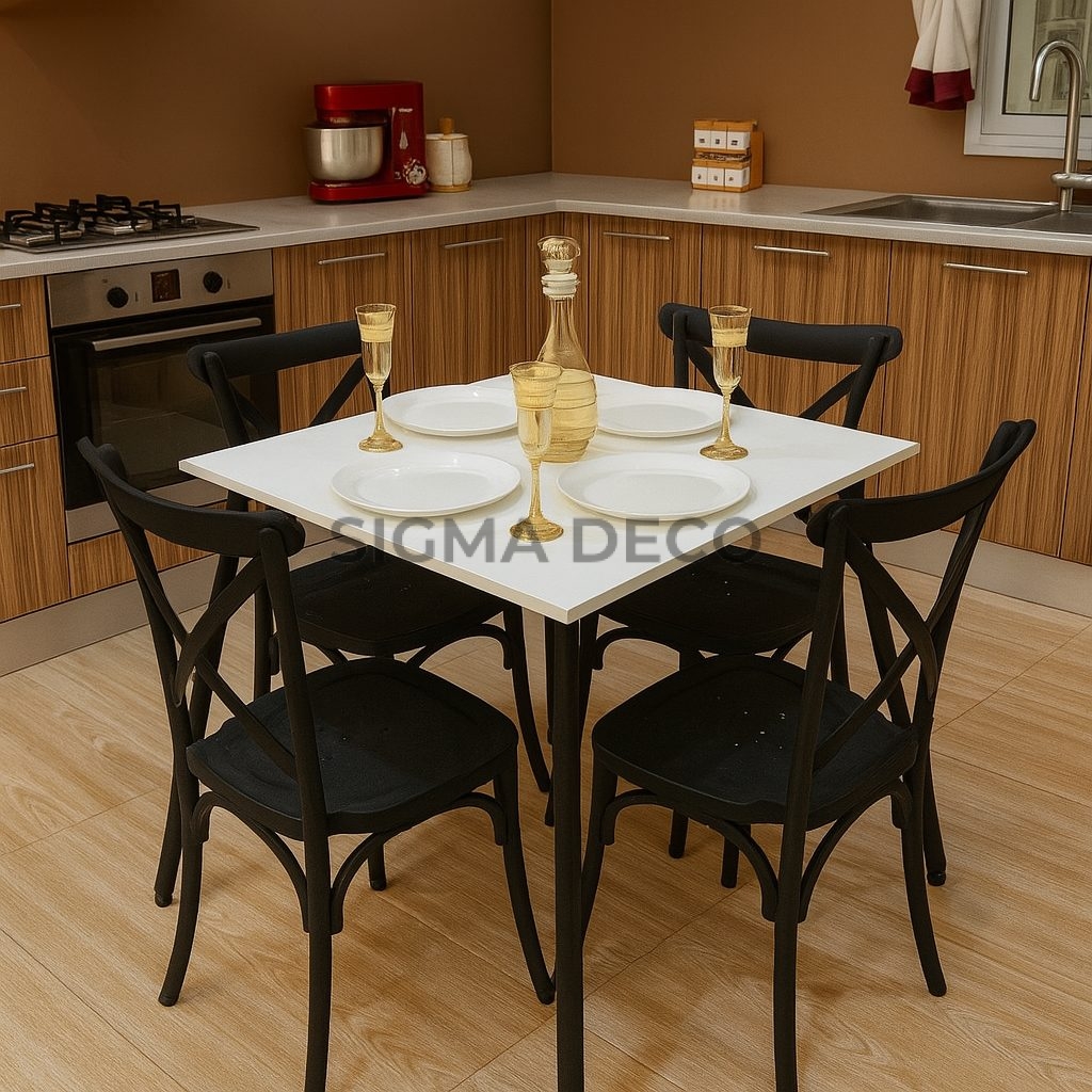 Ensemble Table Blanche et 4 Chaises Noires – Style Bicolore Moderne