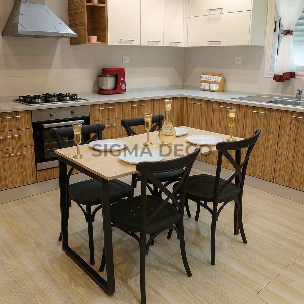 Ensemble Table Plateau Bois et 4 Chaises Noires – Alliance Chaleureuse et Moderne